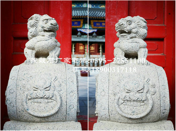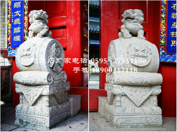 傳統建筑門前經常可以看到一對石制的抱鼓石,它是中國傳統建筑的主要構件之一,是古代房主身份、地位和房屋等級象征的裝飾件,它與門檻、門扇、門框、門簪一起產生古樸典雅的藝術效果。相傳古代打仗凱旋的將領為了顯耀其赫赫戰功,就將戰鼓放置在自家門口。后來,就慢慢地演變成以抱鼓石來代替戰鼓的做法。抱鼓石有擊鼓、升堂、聽政之意,一般只有衙門或官宦之宅門方可放置。 抱鼓石的造型有方和圓兩種,由兩部分組成,下部由須彌座,上部為鼓形,飾以花紋浮雕。此外,抱鼓石還是“非富即貴”的門第符號,是最能標志屋主等級差別和身份地位的裝飾品。