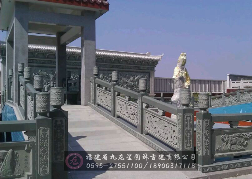 石欄桿是采用各種石材、石料制作的欄桿,使用在甲板、平臺(tái)、走道和棚頂?shù)冗呇卦O(shè)置的圍欄。石欄桿種類繁多 ,市面上常見的石欄桿有青石欄桿、漢白玉欄桿、花崗石欄桿。完整的石欄桿由立柱、柱頭、欄板、抱鼓、墊塊等幾部分組成。