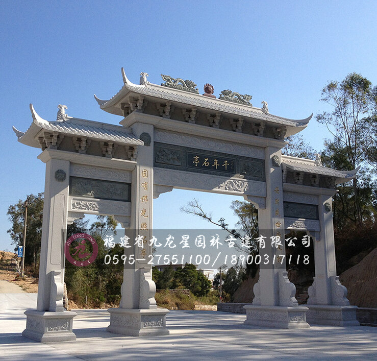 石雕牌坊即石頭修建的牌坊,是一種裝飾建筑物,也是雕刻藝術的一種。常見于古代陵園,如北京明代陵墓外面的大紅門前,有石牌坊一座,整個牌坊為五間六柱十一樓,結構勻稱和諧,造型美觀大方。現代石牌坊常用于村鎮入口,寺廟景區入口等。主要作為標志性的裝飾建筑物,在設計上也沒有古建石雕牌坊那么講究。