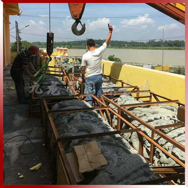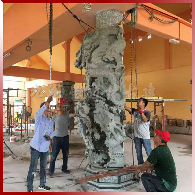 九龍星園林古建位于福建惠安,具有很強的材料選取優勢,通過專業且標準化的采購渠道,甄選出本地優質的礦料,加工的羅源青青石龍柱,精雕細琢,龍柱用于寺廟大殿美化,贏得客戶好評。