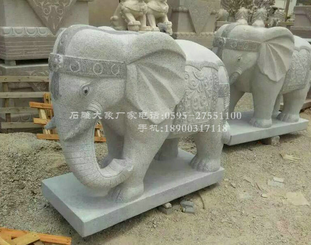 在中國的寺廟、園林、景觀等很多地方可以看到擺放的石雕大象。它是中國傳統(tǒng)古建筑裝飾不可或缺的一種飾物,現(xiàn)在一些愛好工藝品的人家在辦公室內(nèi),或者宅前都會擺放石雕大象。