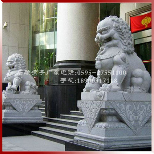 在眾多的名勝古跡區,在高大的辦公樓前,在豪華的住宅區前,我們常常看見一對或坐或立的石獅子雕塑,雄踞大門門前,威風凜凜,有的把守路橋要囗,氣勢宏偉。