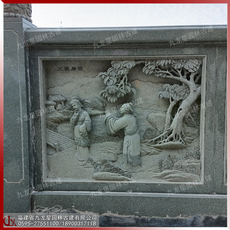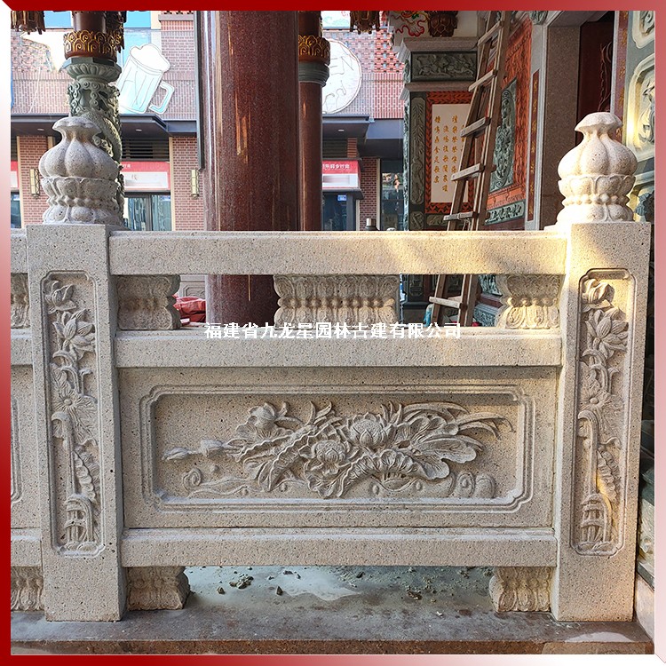 寺院欄桿石雕蓮花 漢白玉石雕浮雕欄桿圖片