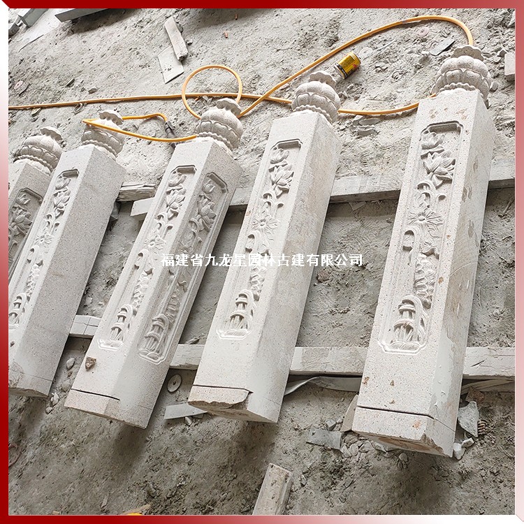 石雕欄板漢白玉欄桿 寺廟石雕欄桿制作廠家 九龍星