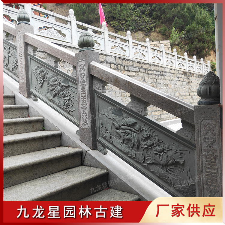 園林古建筑石欄桿具有很好的裝飾作用。石雕欄桿欄板上精美的浮雕圖案讓石欄桿更加的生動,更有觀賞價值。這些豐富多樣的石雕欄桿為園林古建筑的裝飾增強了濃厚的文化氣息。