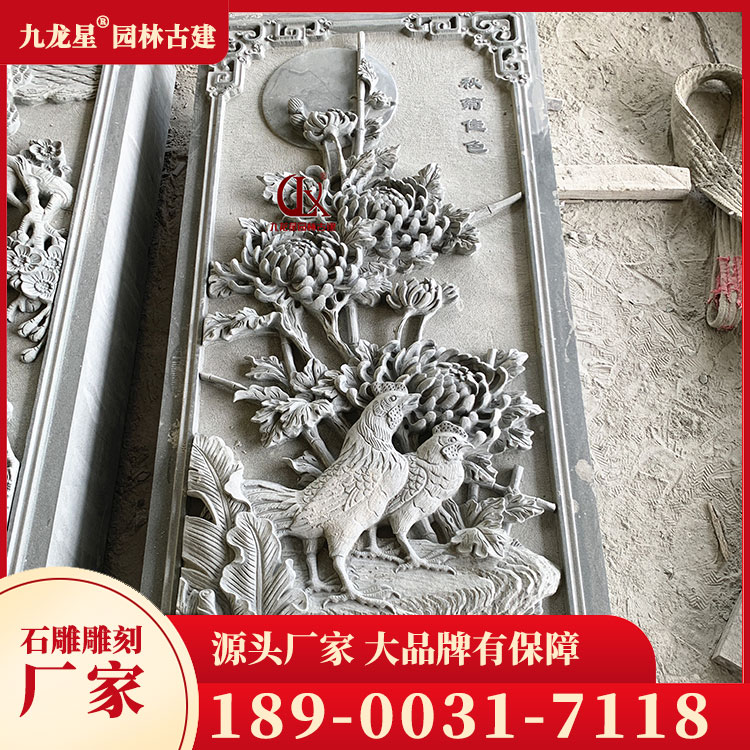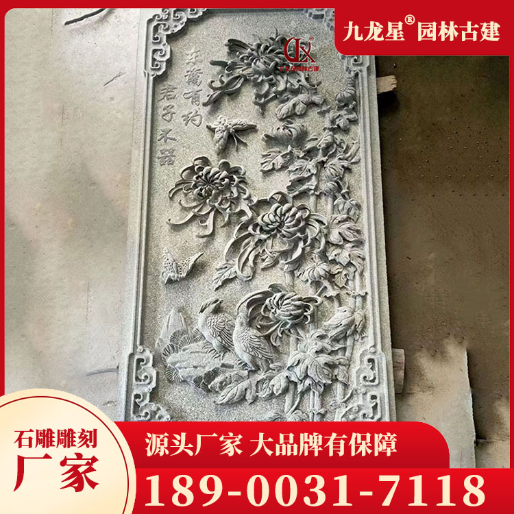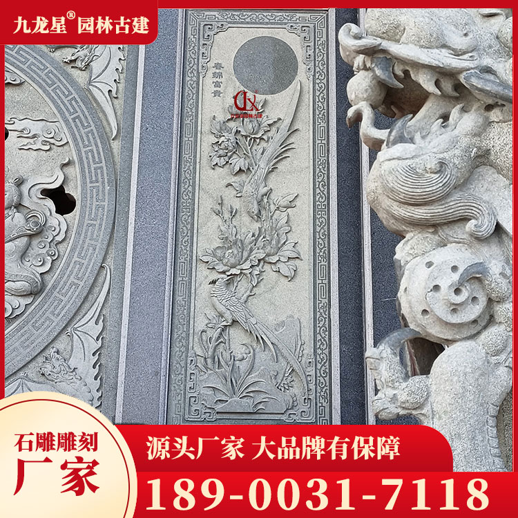 青石浮雕畫春夏秋冬圖案 寺廟浮雕墻石雕刻 九龍星